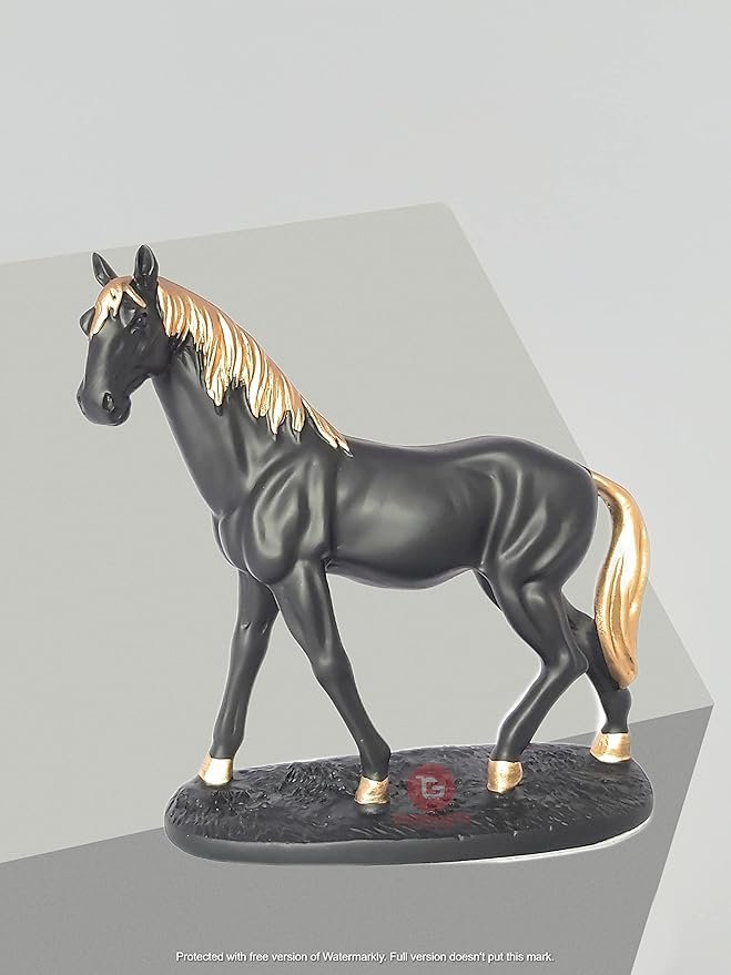 Horse Statue Showpiece Figurine Home Decor Item 17 Cm ( Black )